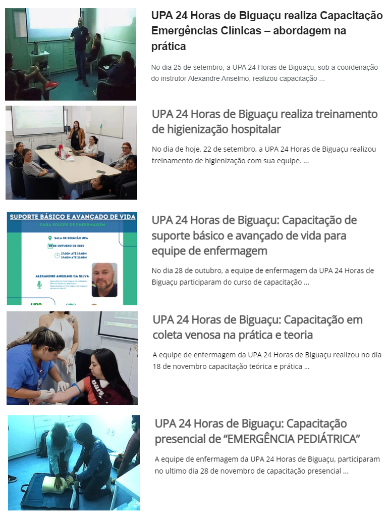 IBHASES, a organização social responsável pela administração da UPA 24 Horas de Biguaçu, reconhece que ter uma equipe técnica capacitada atuando naquela unidade de saúde é crucial para salvar vidas e garantir um atendimento de saúde eficiente. Em 2025, a organização social ofereceu capacitação mensal durante o ano.