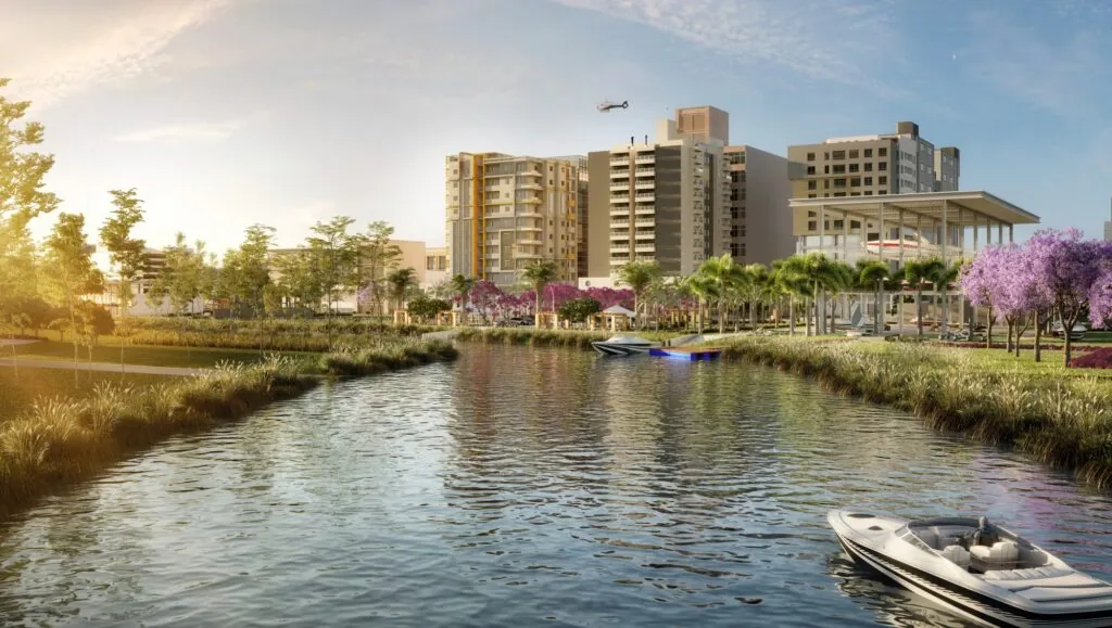 O conceito do Deltaville inclui mercado, restaurantes, bares, academias e um núcleo central de convivência dentro do próprio bairro. A proposta é que os moradores tenham tudo a poucos minutos de distância, dentro de um modelo de cidade inteligente.