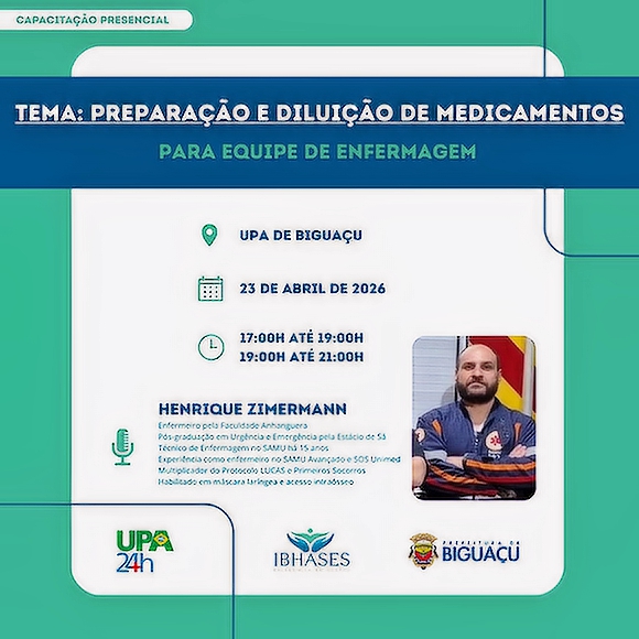 As equipes de enfermagem da UPA 24 Horas de Biguaçu participaram, nesta data, 23 de abril, de um curso de capacitação sobre a preparação e diluição de medicamentos, ministrado pelo enfermeiro Henrique Zimmermann.
